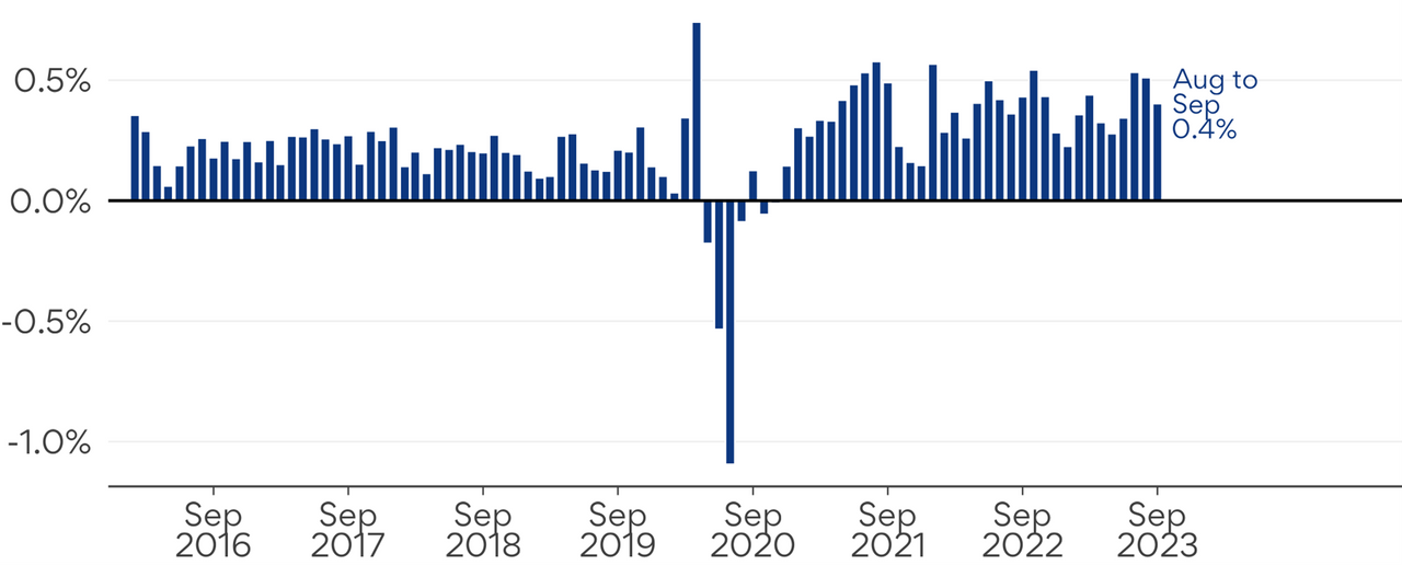 Month-on-month ASI growth fell slightly from 0.5% in August to 0.4% in September.