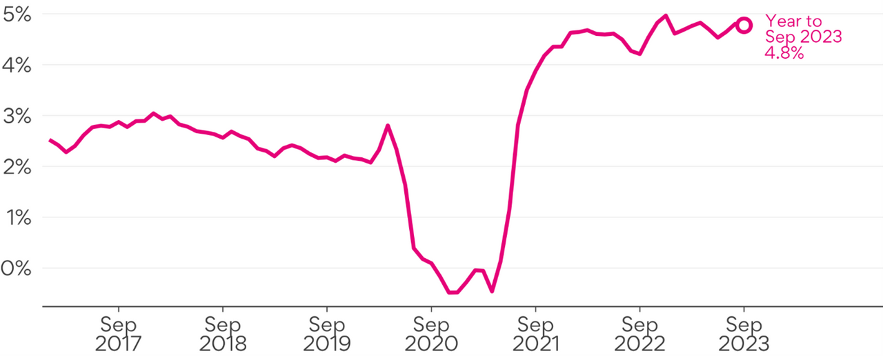 Advertised salaries rose 4.8% in the year to September, the same as in the year to August.