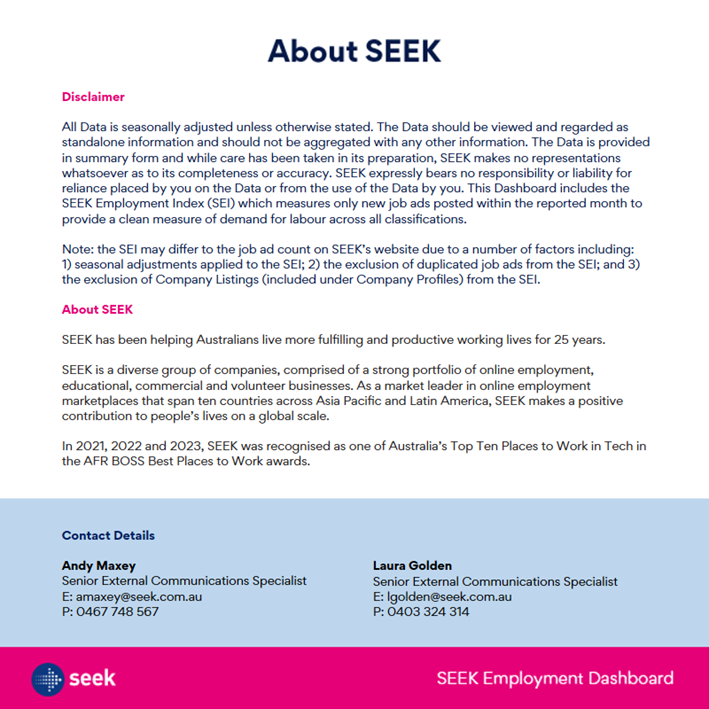 MEDIA NOTE: When reporting SEEK data, we request that you attribute SEEK as the source and refer to SEEK as an employment marketplace.