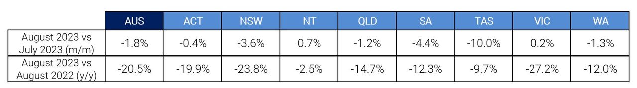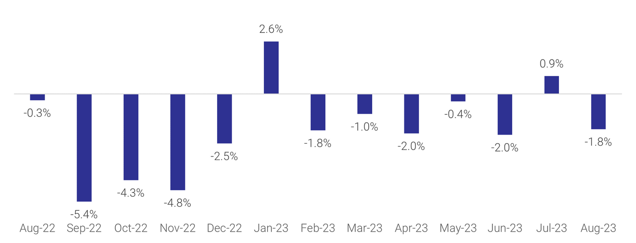 Figure 1: National SEEK job ad percentage change m/m August 2022 to August 2023
