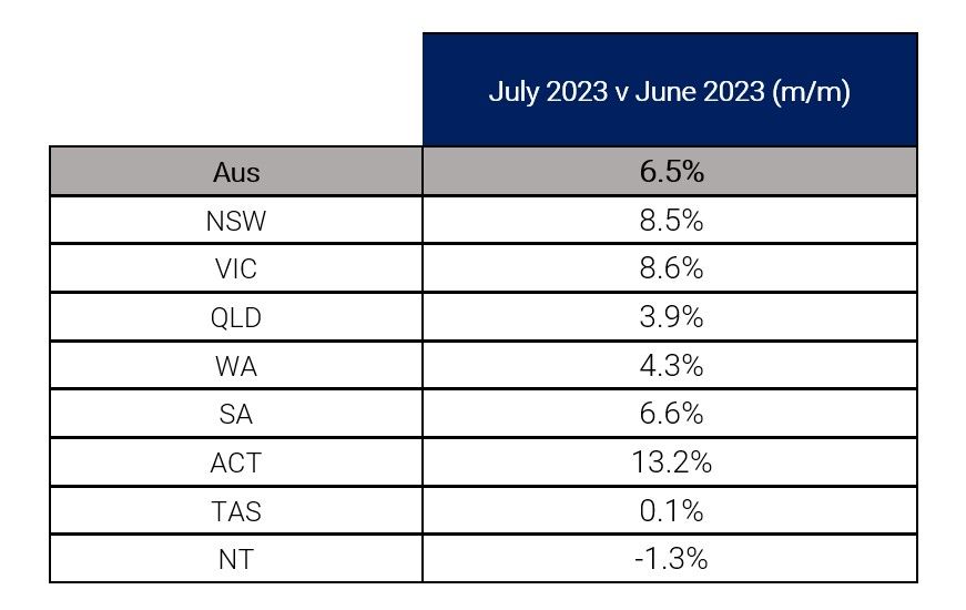 Figure 2: National SEEK job ad percentage change by state: August 2023 vs July 2023