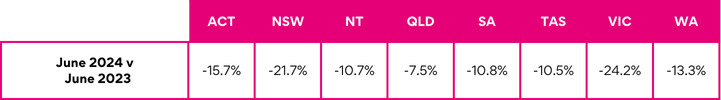The Australian Capital Territory recorded the largest decline in ad volumes in June, dropping 5.1%. After a rise in volumes in May, Tasmania fell 3.9%.