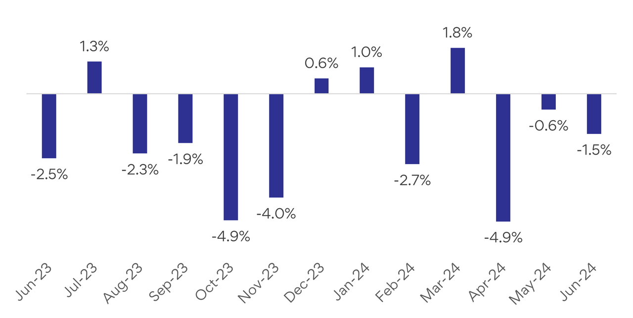 Figure 1: National SEEK job ad percentage change m/m (June 2023 to June 2024)
