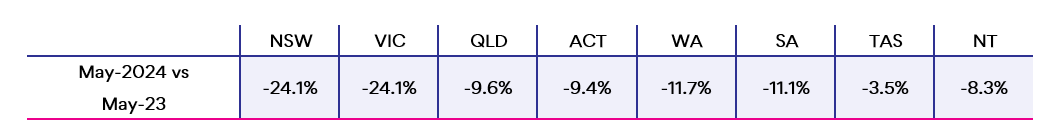Small declines in ad volumes in New South Wales, Queensland, Victoria and the Northern Territory contributed to the national decline in May.