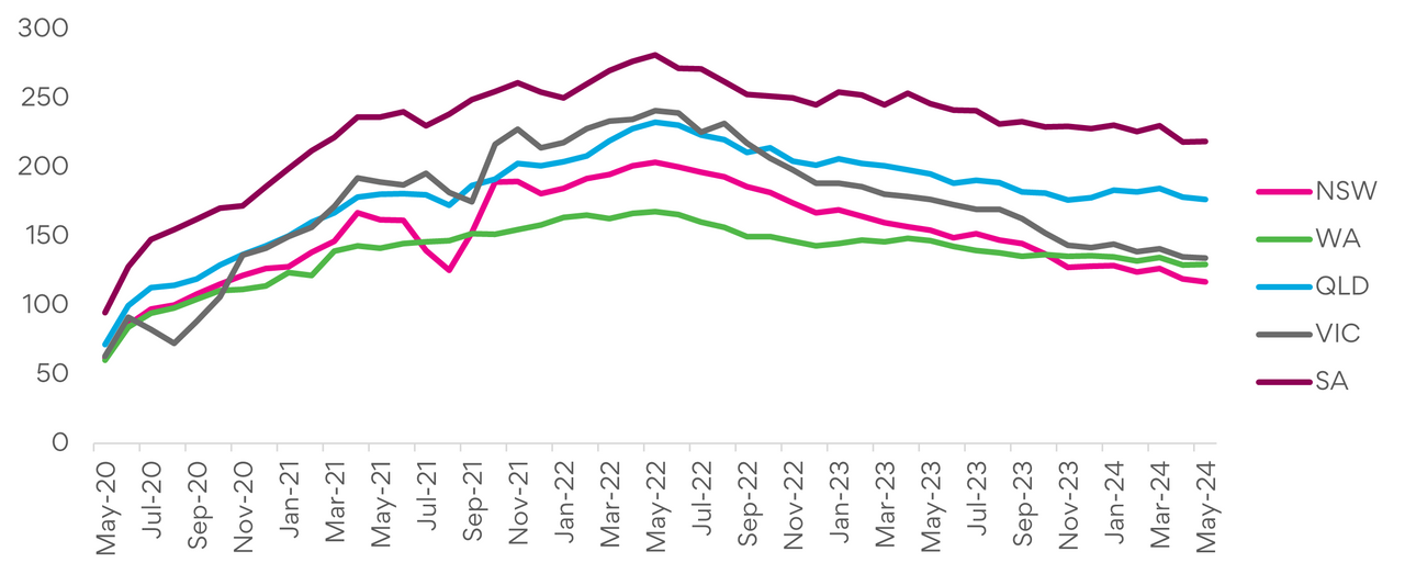 Figure 3: Major state job ad trends: May 2020 to May 2024