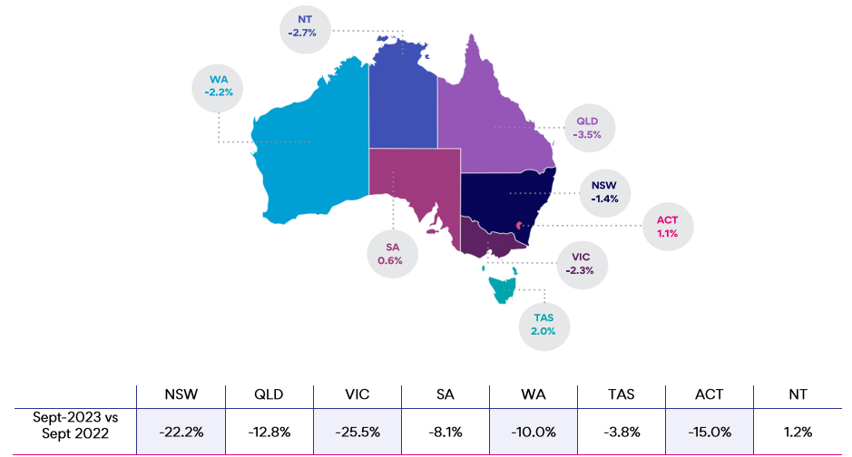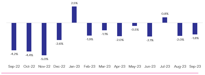 Figure 1: National SEEK job ad percentage change m/m September 2022 to September 2023