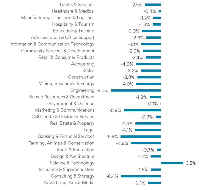 Science & Technology was the only industry to record m/m growth in job ads, rising 3.5%