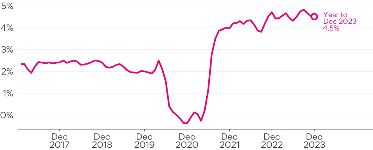 Advertised salaries grew by 4.5% in the year to December, the same as the year to November.