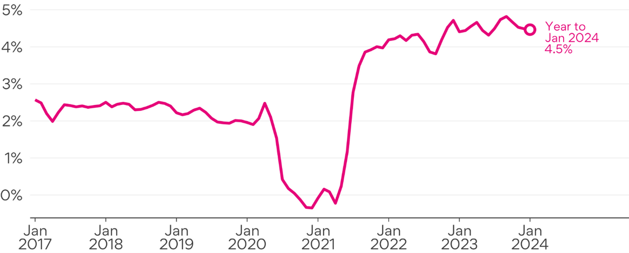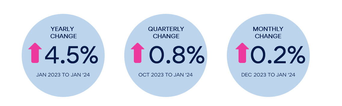 Although the SEEK ASI has slowed m/m, annual growth remains solid at 4.5% in the year to January 2024. This has declined from 4.8% in the year to September, but remains robust.