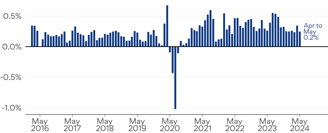 Advertised salary growth dropped slightly in May, rising just 0.2% after a slight pickup in April.