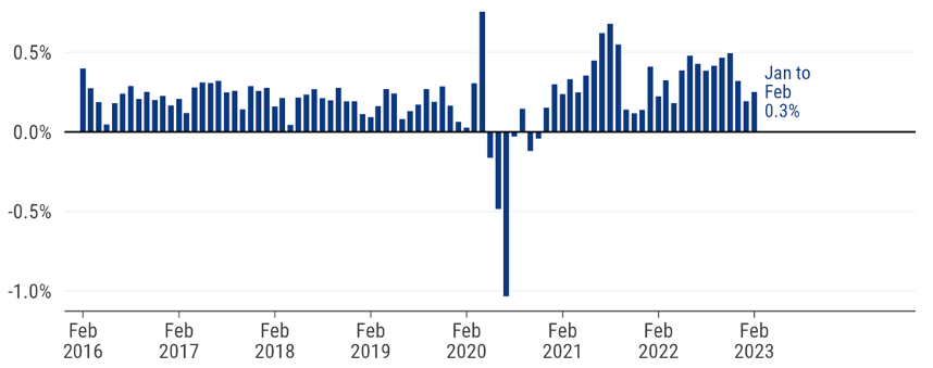 Advertised salaries grew by 0.3% in February 2023, up from the 0.2% recorded in January 2023.