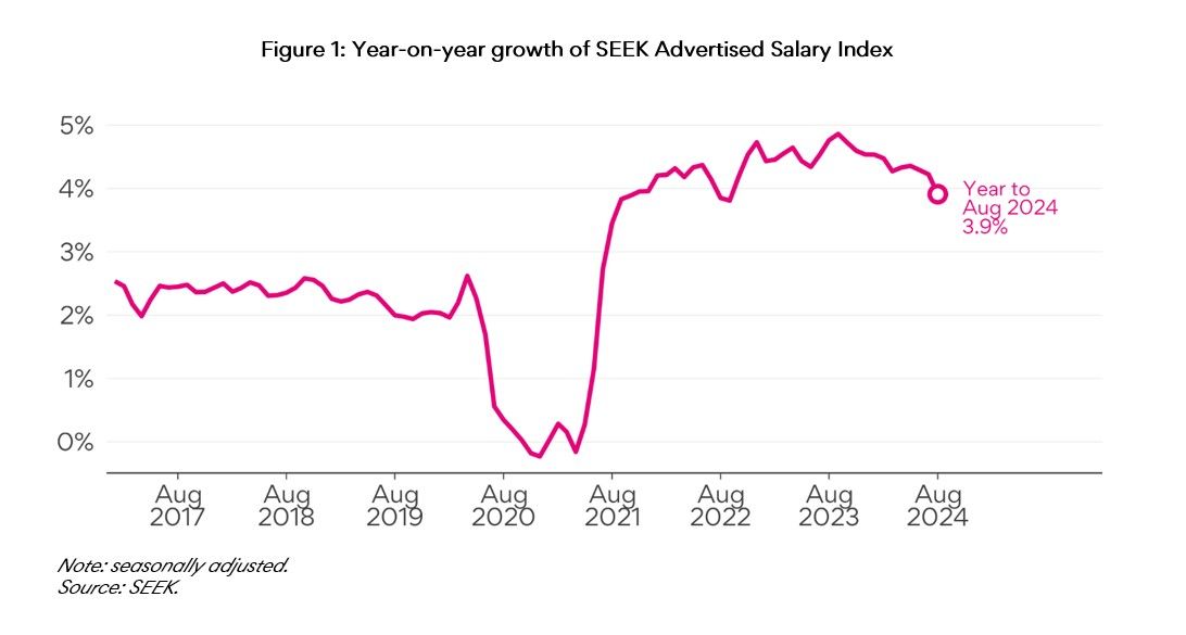 At 3.9% y/y, average advertised salary growth has slowed, down from 4.2% in July.
