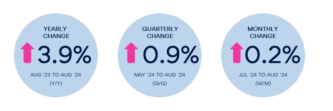 August recorded the slowest m/m growth rate in almost two years, rising 0.2%.