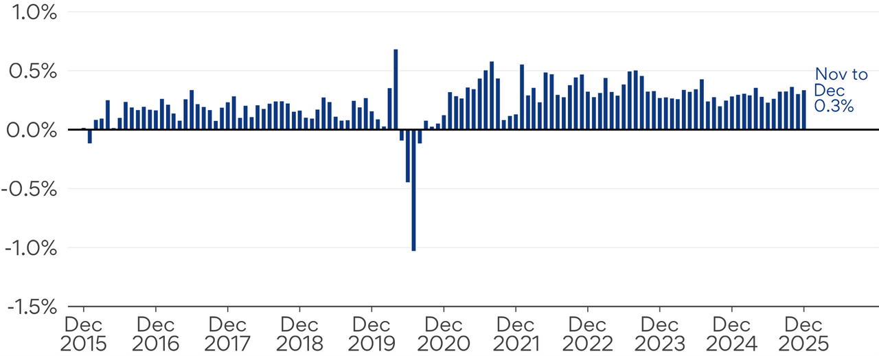 "Despite faster growth in advertised salaries, many households likely felt a cost-of-living squeeze in the second half of 2025. Consumer prices also accelerated over this period, with annual inflation rising from 1.9% in July to 3.4% in November."