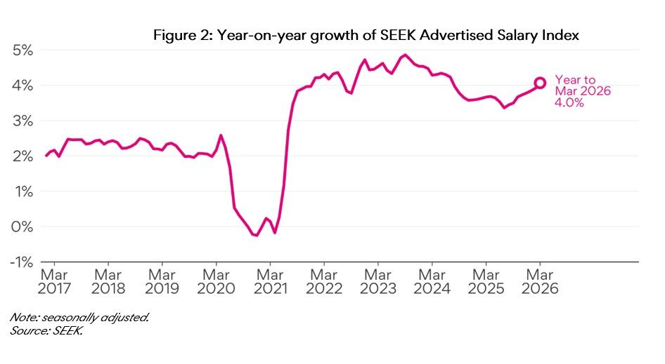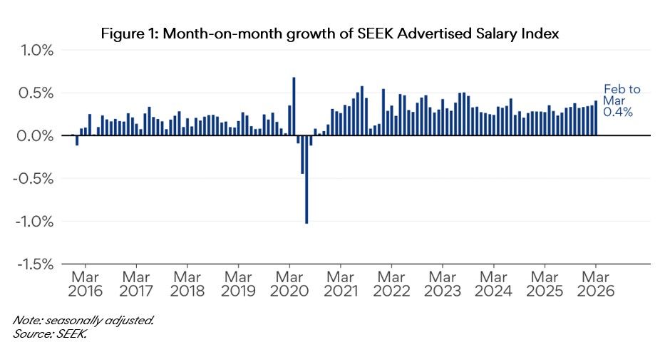 “Advertised salary growth accelerated in March, rising 0.4% over the month to reach 4.1% year-ended – the fastest annual pace since July 2024.