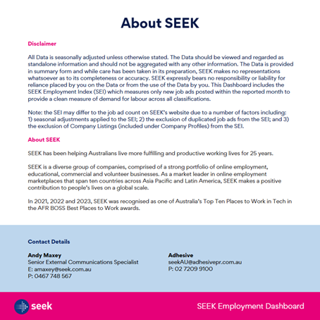 MEDIA NOTE: When reporting SEEK data, we request that you attribute SEEK as the source and refer to SEEK as an employment marketplace.