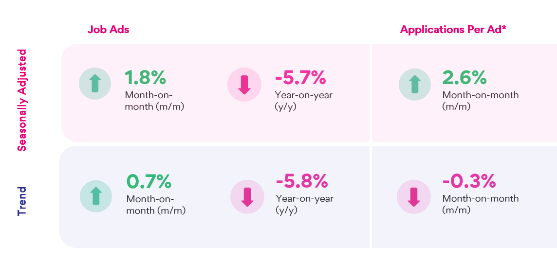 NOTE: This report includes SEEK’s seasonally adjusted data as well as trend data for the first time. Where not otherwise specified, the commentary, figures and tables in this report refer to the seasonally adjusted data. See notes 2 and 3 at end for more information about the difference between the two data sets.