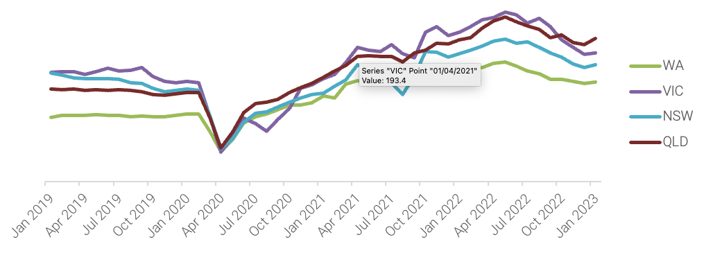 Figure 2: Major state job ad trends: January 2019 to January 2023