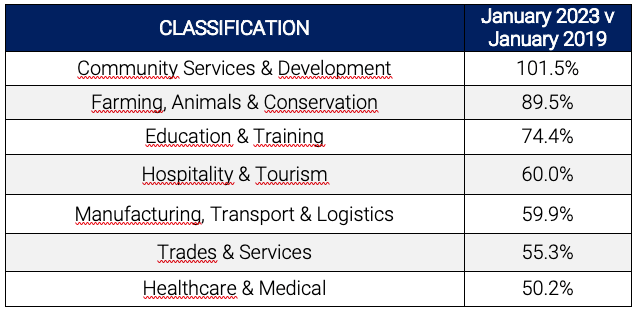 Table 2: Job ads by industry: January 2023 v January 2019.