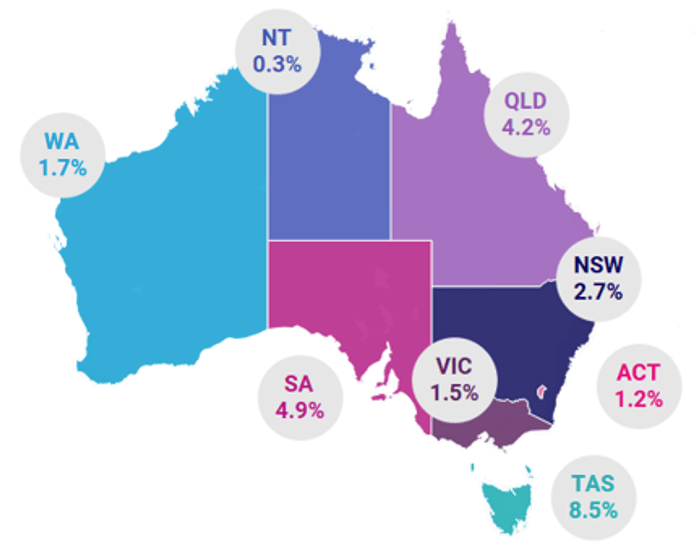 Tasmania had the highest rise in job ads, lifting by 8.5%. Queensland drove the national growth in job ads, up by 4.2%, followed by New South Wales, which was up 2.7%.