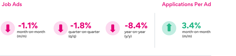 “Applications per job ad, which indicate candidate interest in the jobs available, have jumped again month-on-month and have not been this high since the start of COVID.”