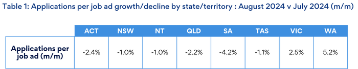 *Applications per job ad are recorded with a one-month lag. Data shown in this report refers to August data.