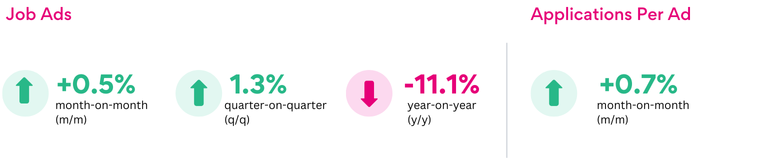 Applications per job ad also increased slightly, rising 0.7% m/m*.