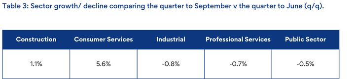 The Consumer Services sector has recorded the most growth q/q, up 5.6%.