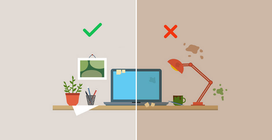 - Keep it clean. Okay, so germs are pretty much unavoidable no matter where you work. Think about how many different surfaces you touch on an average day at the office? Then consider whether or not you wash your hands every time you grab a snack or touch your face.
